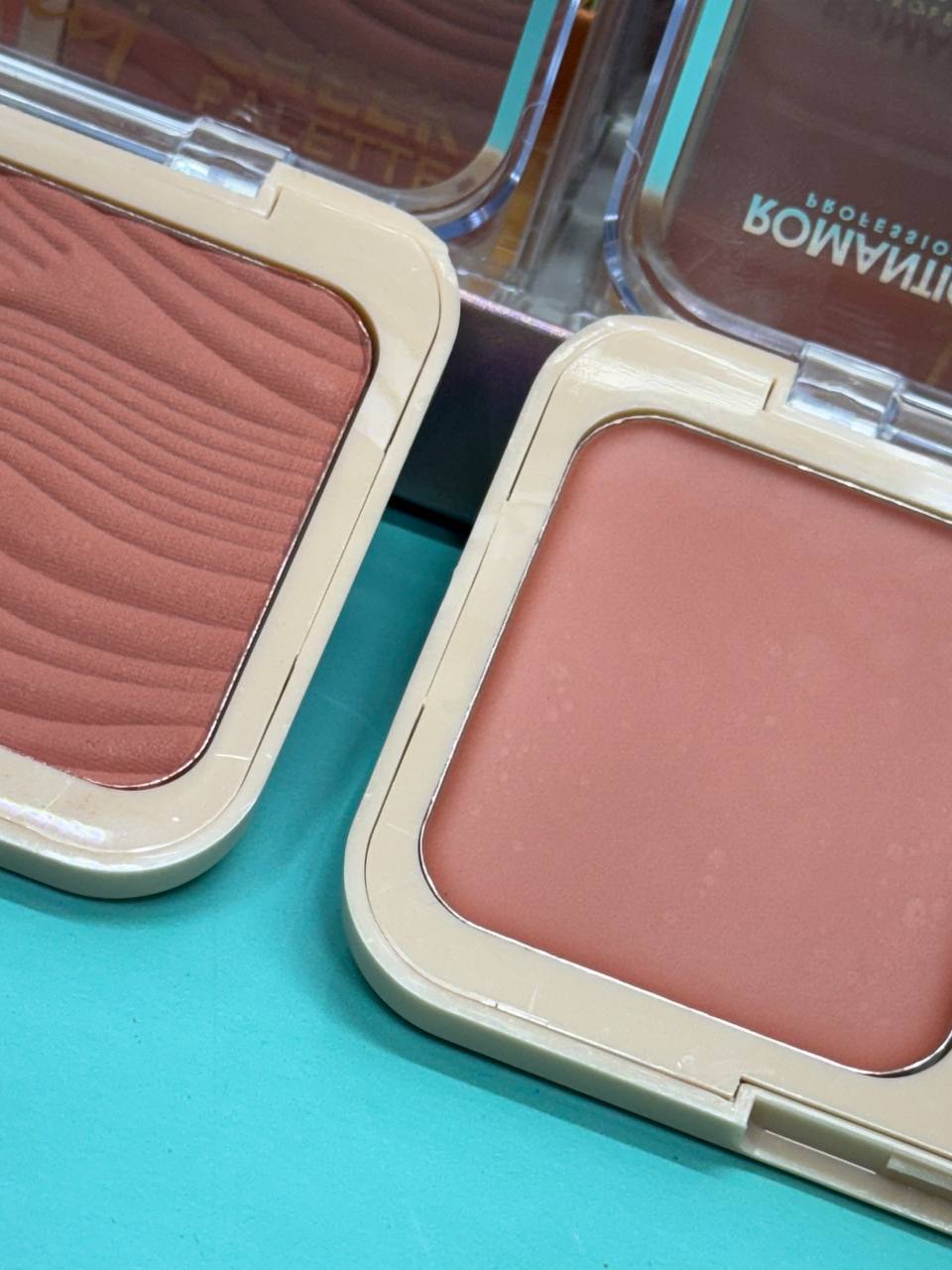 رژ گونه رمانتیک کالر که به صورت پک دو تایی عرضه میشود و یک سمت چرب و سمت دیگر پودری است .